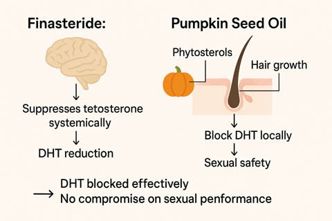 Pumpkin Seed Oil: Phytosterols block DHT locally → Hair growth + sexual safety